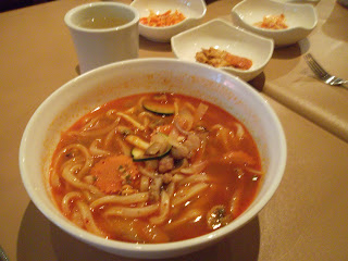 Above is what I got. The Jjam Pong, "a spicy seafood soup with udon noodle, shrimp, squid, scallop, mussel, white fish, vegetables". I really enjoyed the heat of the spice and the variety of the seafood. The vegetables in the soup also tasted really fresh and getting the side dishes without knowing what they were going to be was a fun surprise. Those are a carrot side dish, fish cakes, and bean sprouts. My favorite was the bean sprouts which tasted like they were in sesame oil.